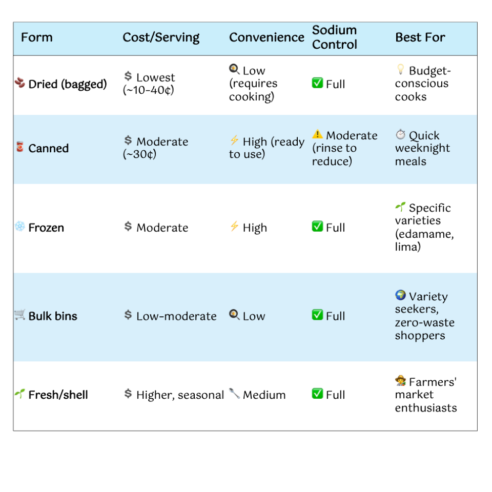 Beans are one of the most nutritious and budget-friendly foods available, and Americans have several great options for how to buy them — each with its own unique set of advantages. Here’s a friendly breakdown of the most common forms: